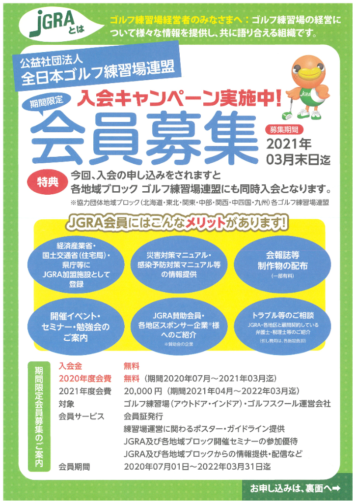 詳しくはJGRA/(公社)全日本ゴルフ練習場連盟ホームページでご確認ください。
